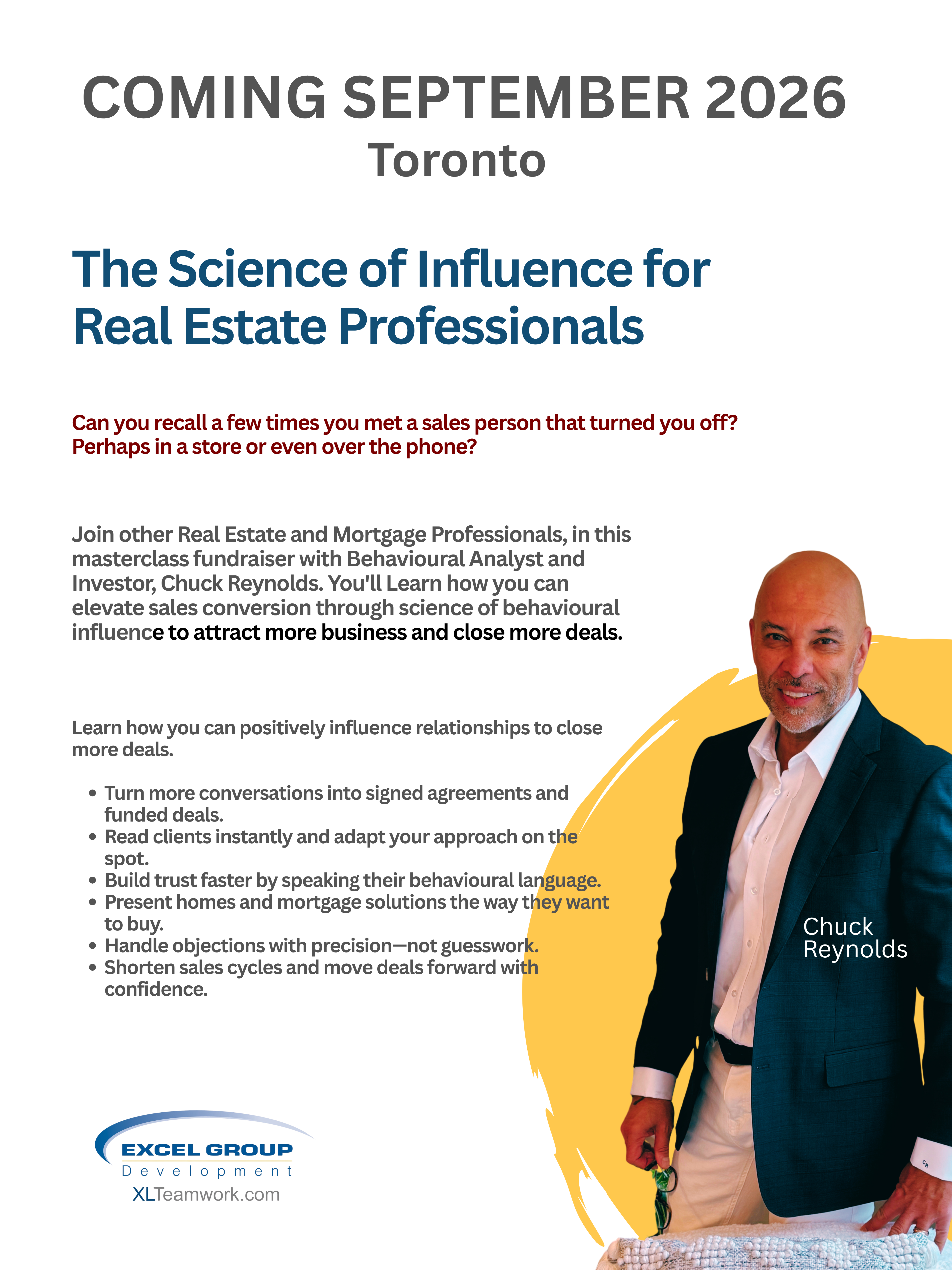 Coming to Toronto Fall 2026 Master Class for elevating your success to close more deals through behavioural influence.